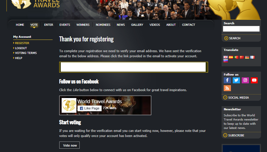 ※ワールドトラベルアワードの投票アカウントを既にお持ちの場合は、メールアドレス