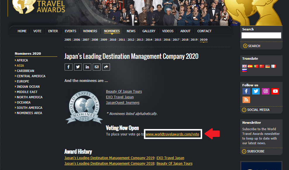 こちらのリンクをクリックお願い致します www.worldtravelawards.com/vote