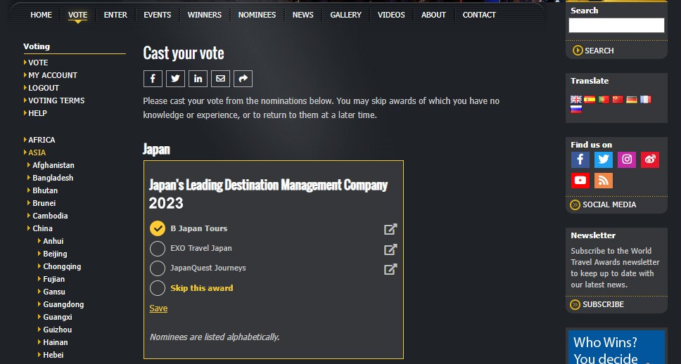 こちらのリンクに入ってください: https://www.worldtravelawards.com/vote-r4-c96#votenow